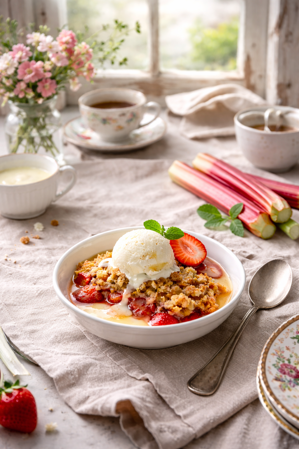 Rhabarber-Erdbeer-Crumble | Zitronen-Buttermilch-Eis