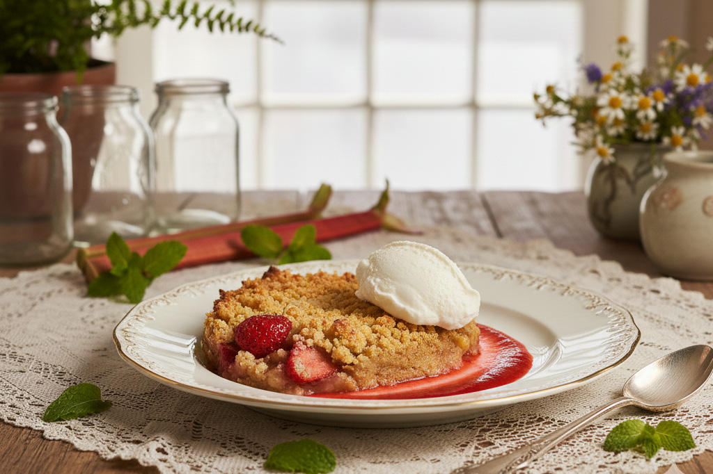 Ziegenfrischkäse-Mousse | Rhabarber-Crumble
